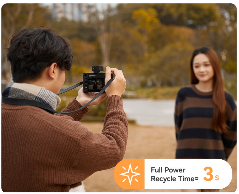 フルパワーでもわずか3秒の高速リチャージで、あなたのフラッシュは常に撮影の準備万端。素早いレスポンスにより一瞬を逃さず、撮影に集中して創造力を途切れさせません。ダイナミックなアクションから繊細なディテールまで、あなたのビジョンにしっかりと応えるライティングを実現します。
