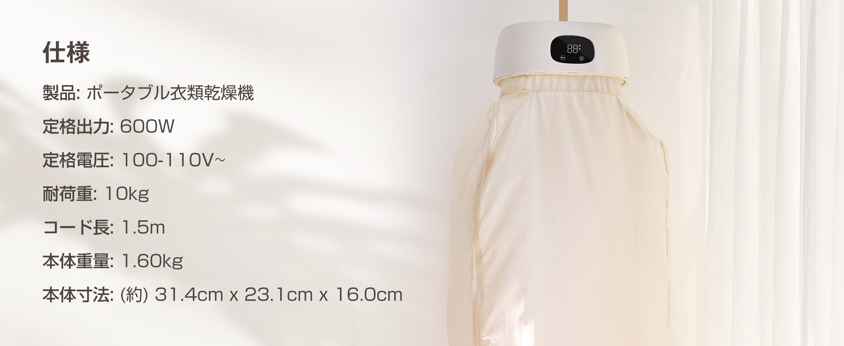 コンパクトな設計でありながら、耐荷重は約10kgを実現しています。シャツやタオルなどを8~10枚、一度に乾燥させることが可能です。ミニ衣類乾燥機でありながら、毎日の洗濯を行う一人暮らしの方や、お子様がいらっしゃるご家庭のニーズに応える大容量設計です。