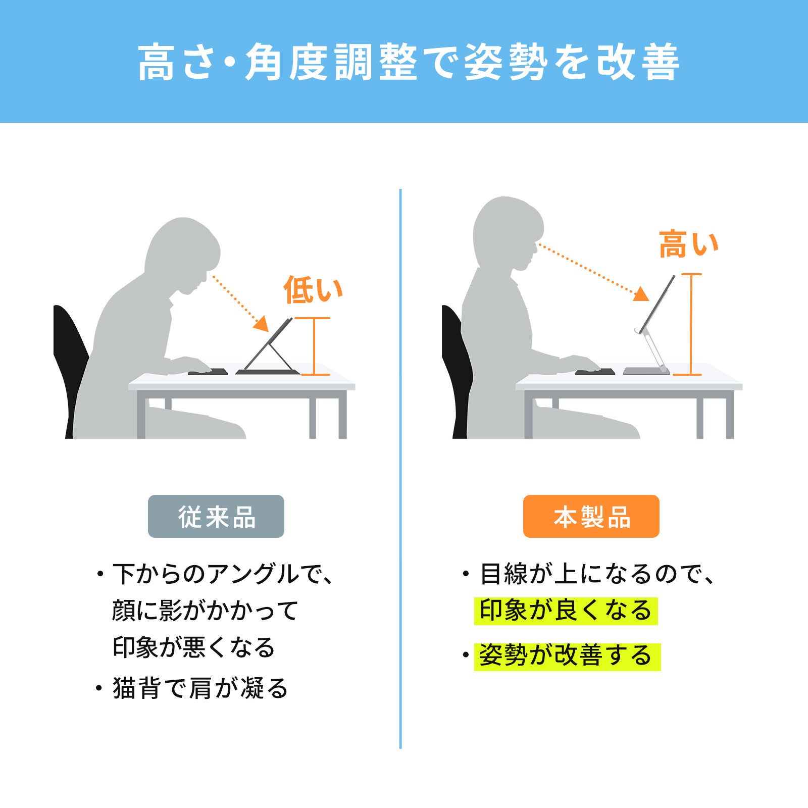 角度や高さを見やすく調整
