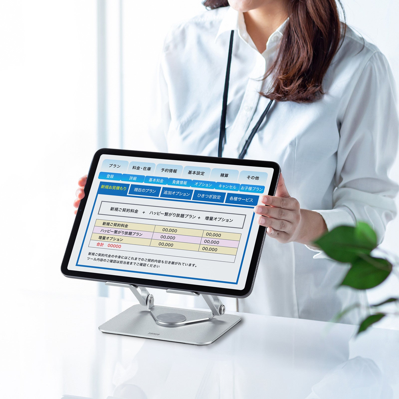 窓口、レジの会計、サブディスプレイ、キーボード操作など、様々なシーンで活用できます。