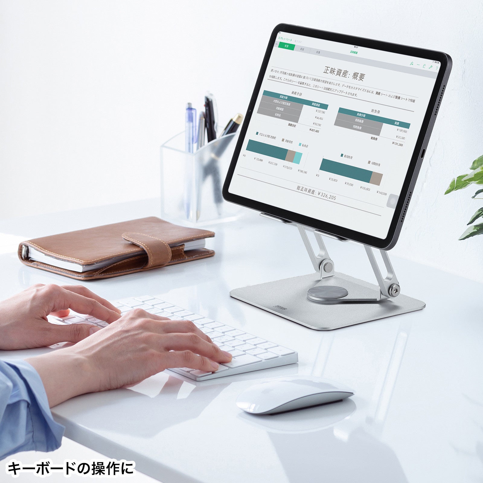 タッチペンを使用する時や、タブレットのキーボードでタイピングしたい時など多様な使用シーンに合わせて角度調整できます。