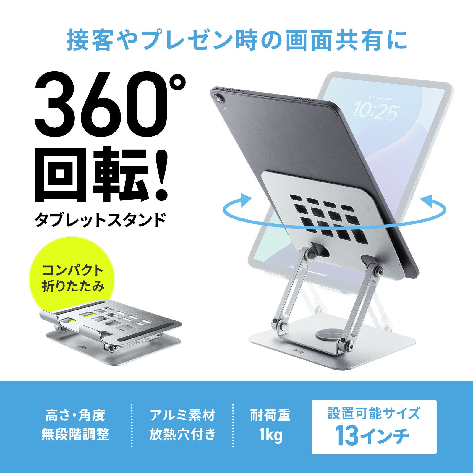 品名:タブレットスタンド(回転式・アルミ製)