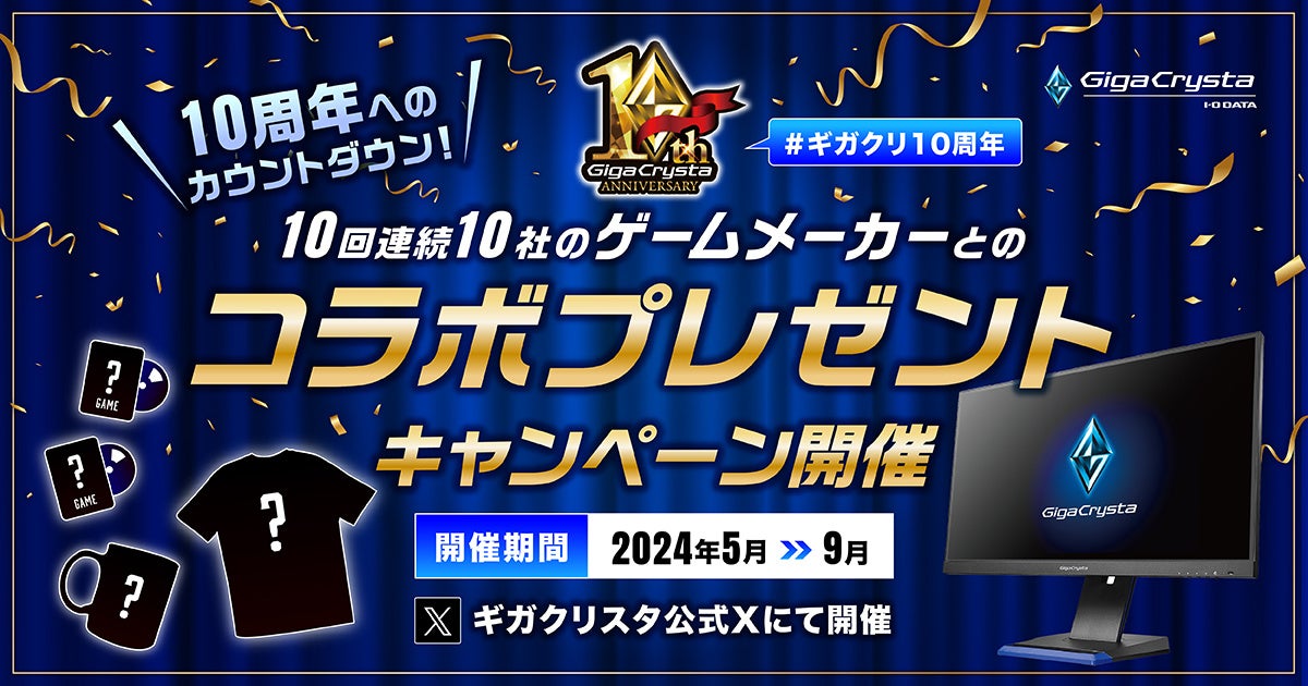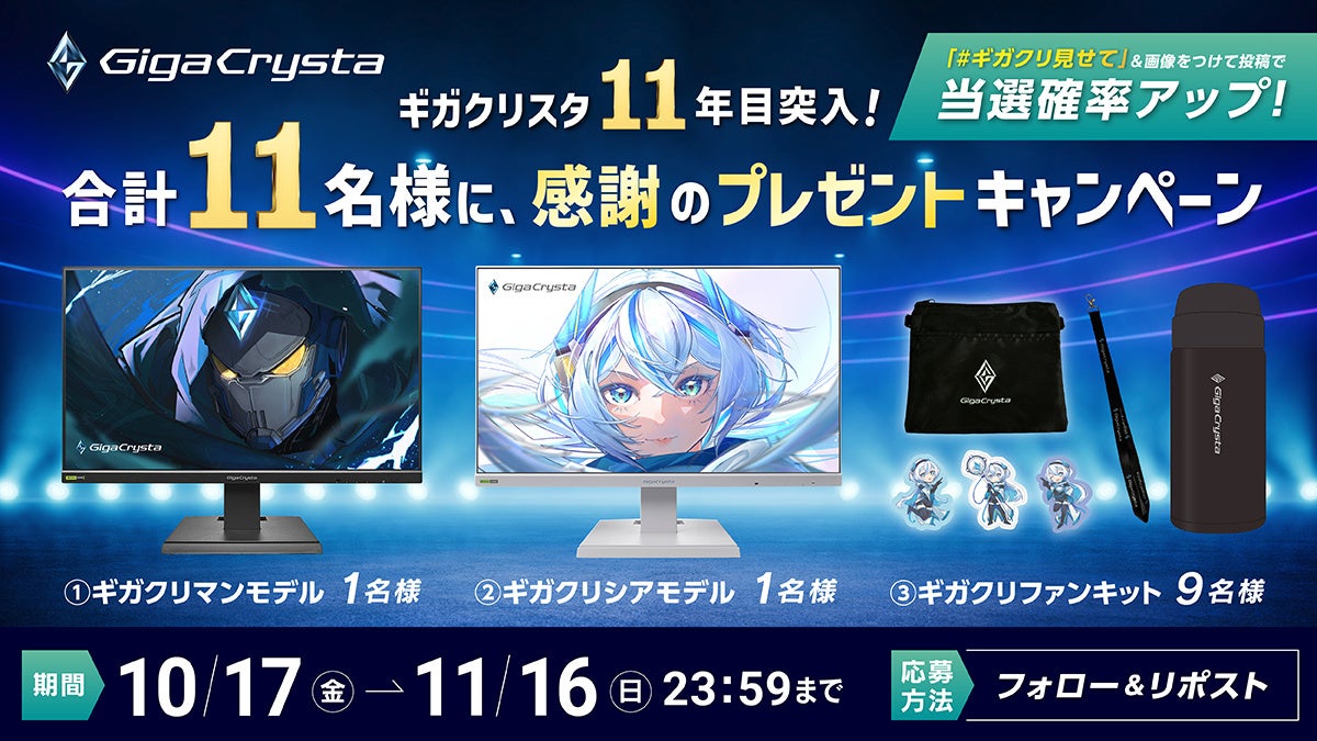 株式会社アイ・オー・データ機器(本社:石川県金沢市、代表取締役会長:細野 昭雄、以下、アイ・オー・データ)が展開するゲーミングモニターブランド「GigaCrysta(ギガクリスタ)」は、2025年10月15日(水)に、ブランド設立11年目を迎えることをお知らせいたします。11年目突入にあわせて、Xでのプレゼントキャンペーンも開催いたします。
