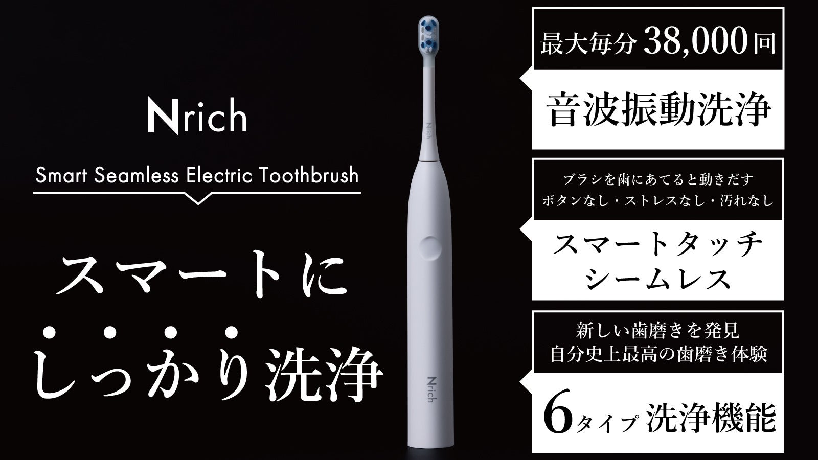 「 Nrich | エンリッチ」が、10月16日(木)よりクラウドファンディング「Makuake マクアケ」にて、新商品「スマートシームレス電動歯ブラシ」を先行販売します。