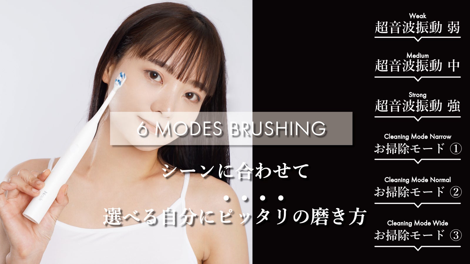 【6つの洗浄機能モード】モードごとに、新しい磨きを発見できる!2分でスッきり歯磨きライフ!