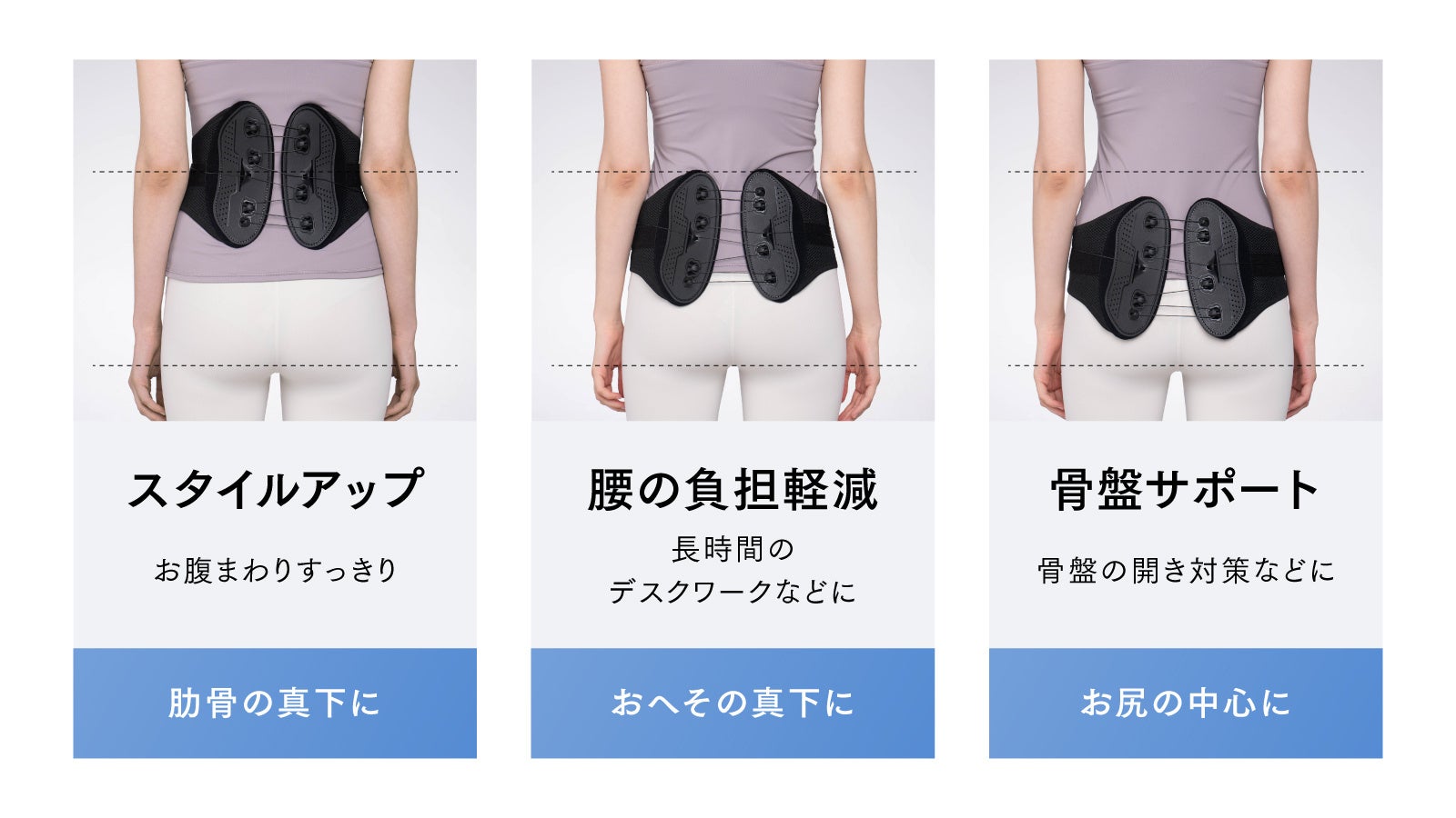 装着する位置によりおなかや骨盤の悩みもしっかりサポートします。
