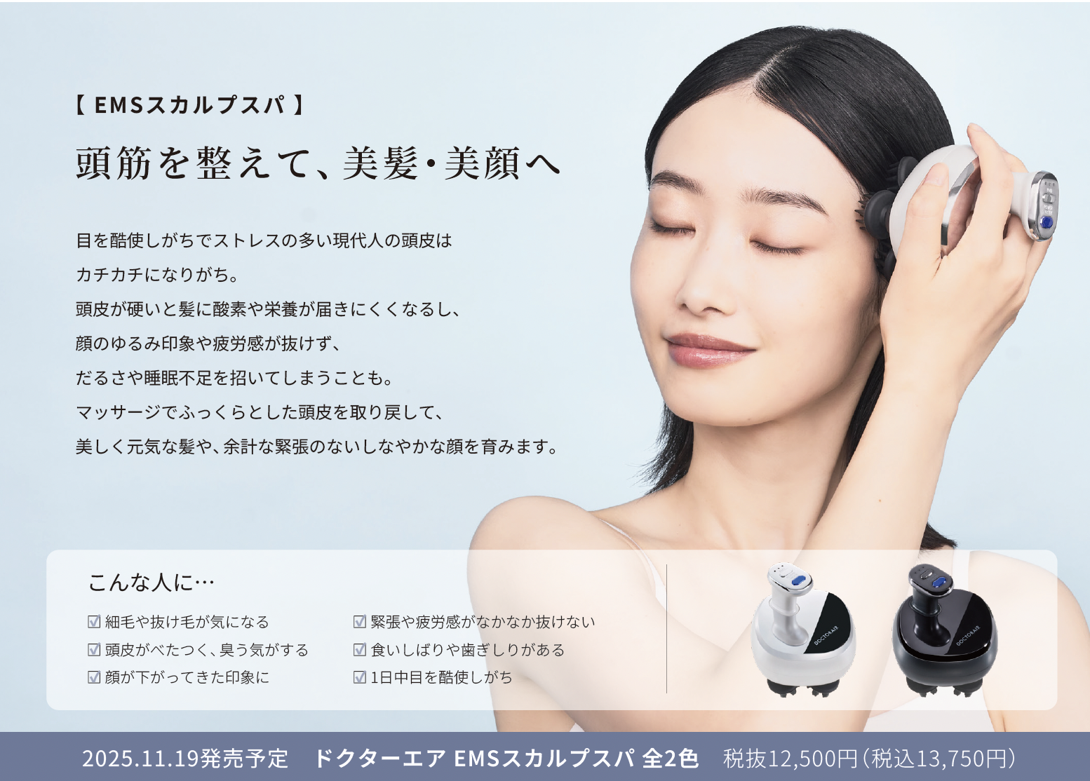 2025.11.19発売予定 ドクターエア EMSスカルプスパ 税抜12,500円(税込13,750円)