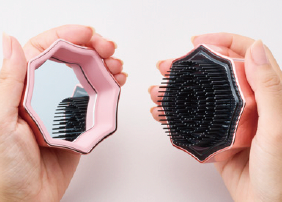 ピン部分を清潔に保つ蓋付き。内部にミラーがあるため、外出先でのスタイルチェックにも便利です。