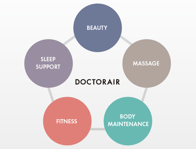 2013年のブランド創設以来、ドクターエアは誰でも気軽に、簡単に健康を目指せるよう、マッサージ機器やコンディショニングツールを発売してきました。体が資本であるアスリートや俳優、モデルなど“見られる職業”の方々からの支持を得て、多くのヒット製品を世に送り出してきました。