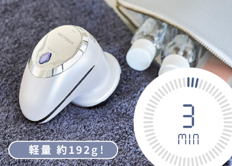 コンパクト設計に定評あるドクターエアらしく、約230gという圧倒的な軽さを実現。腕を上げなければならない頭皮ケアでも疲れない軽さで、毎日続けたくなるハンディサイズ。頭皮に蓄積した汚れをかきだし、マッサージ効果で血流をサポートするから、ふっくら健康的な頭皮へ。