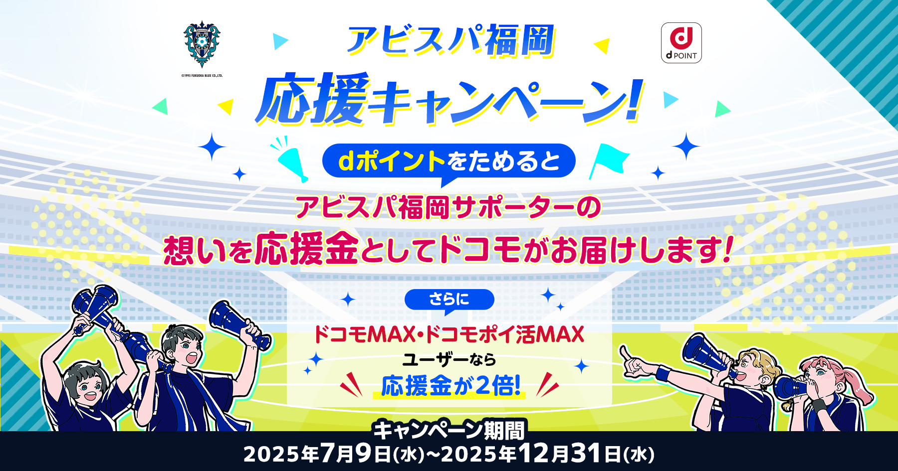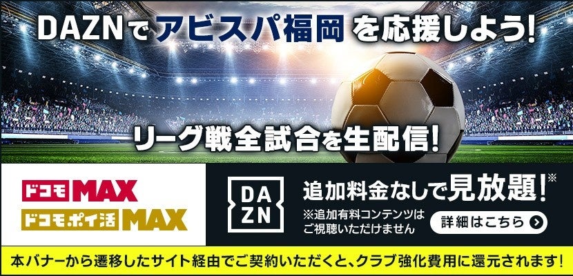 アビスパ福岡は、株式会社NTTドコモが提供する料金プラン「ドコモMAX」、「ドコモ ポイ活 MAX」と連携し、クラブの強化費に繋がる取り組みを実施しております。