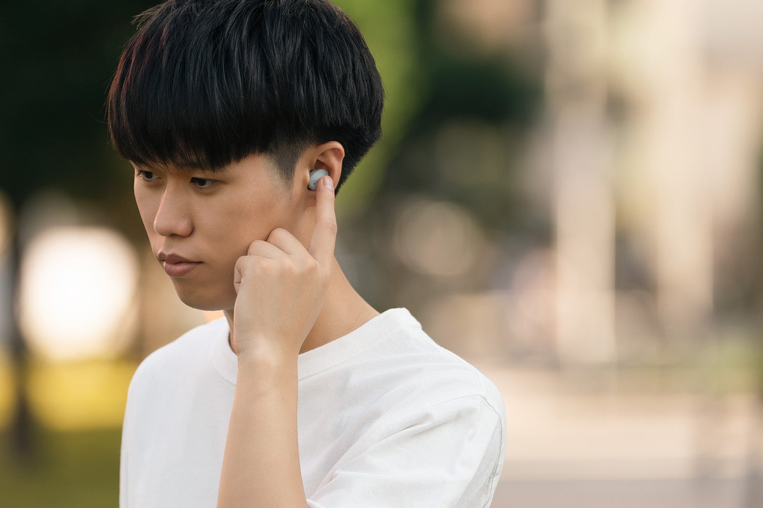 独自のアルゴリズムにより、音質と遮音性を両立したノイズキャンセリングに加え、周囲の音を聞き取りやすくする「アンビエントモード」を搭載。L側のワンタッチで切替が可能で、電車の車内等で咄嗟にアナウンスを聞きたいときなどに、装着したままで自在に切替が可能です。