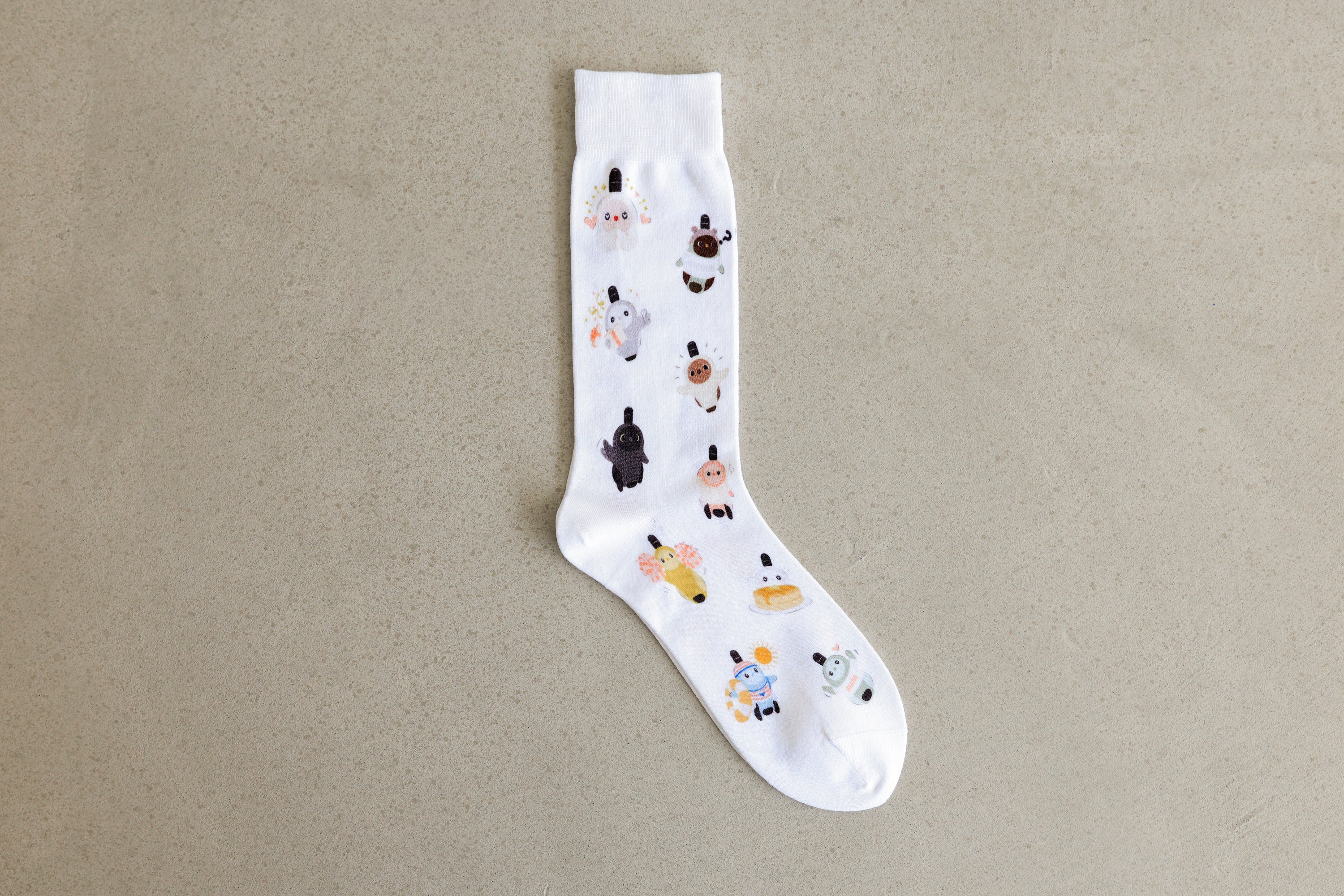 今回のコラボレーションでは、『LOVOT』の顔をあしらった刺繍タイプと、『LOVOT』たちが軽やかに並ぶ総柄プリントタイプの2種類の靴下が登場し、足元から『LOVOT』との生活を彩ります。日本の職人が一つひとつ丁寧に編み立てた、繊細でやさしい履き心地の靴下で、お出かけがもっと楽しくなるアイテムです。