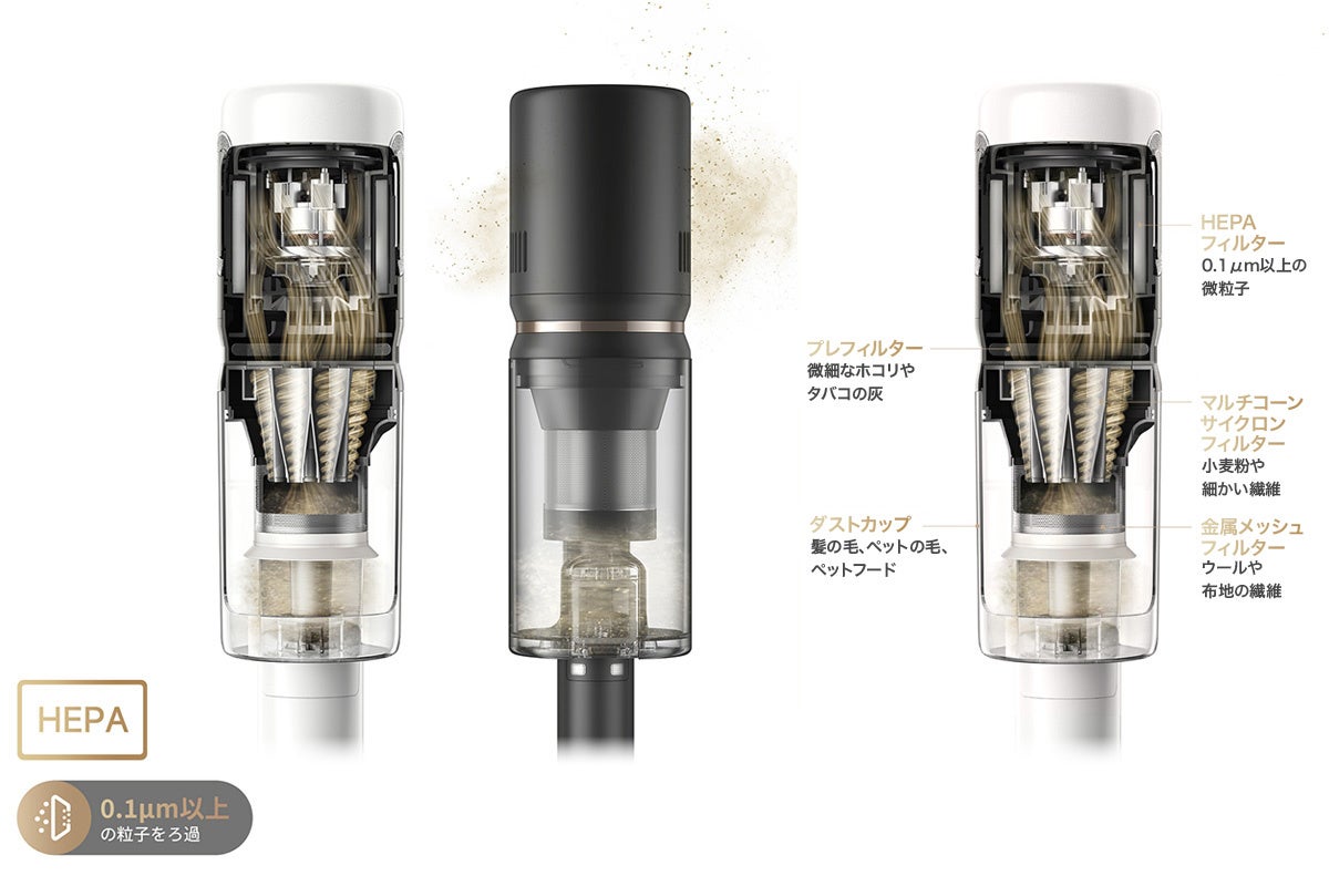 DREAME X1 Airは、8基の高性能サイクロン構造により、ゴミを確実に分離でき、長時間使っても吸引力を落とさないままに保ちます