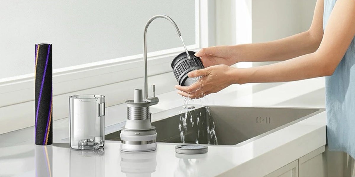 壁掛け収納で、お部屋をスッキリ。Soft Brush 2.0やフィルターは水洗い可能で、お手入れも手間いらず。