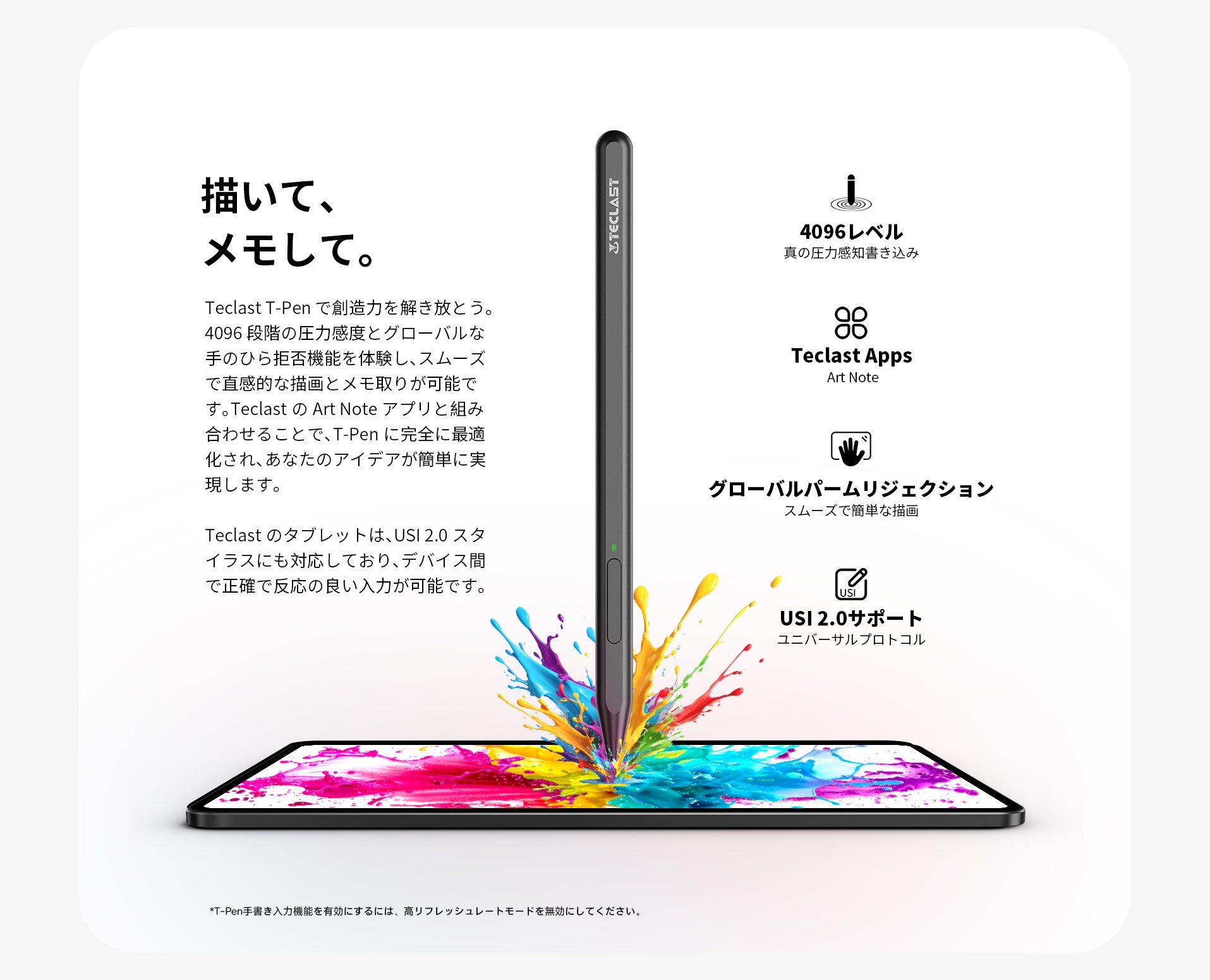 Teclast T-Pen スタイラスペンと組み合わせて使用すると、最大4,096レベルの筆圧感知とパームリジェクション機能を実現。Teclast製高リフレッシュレートタブレットとシームレスに連携し、より優れた描画・筆記体験を提供します。
