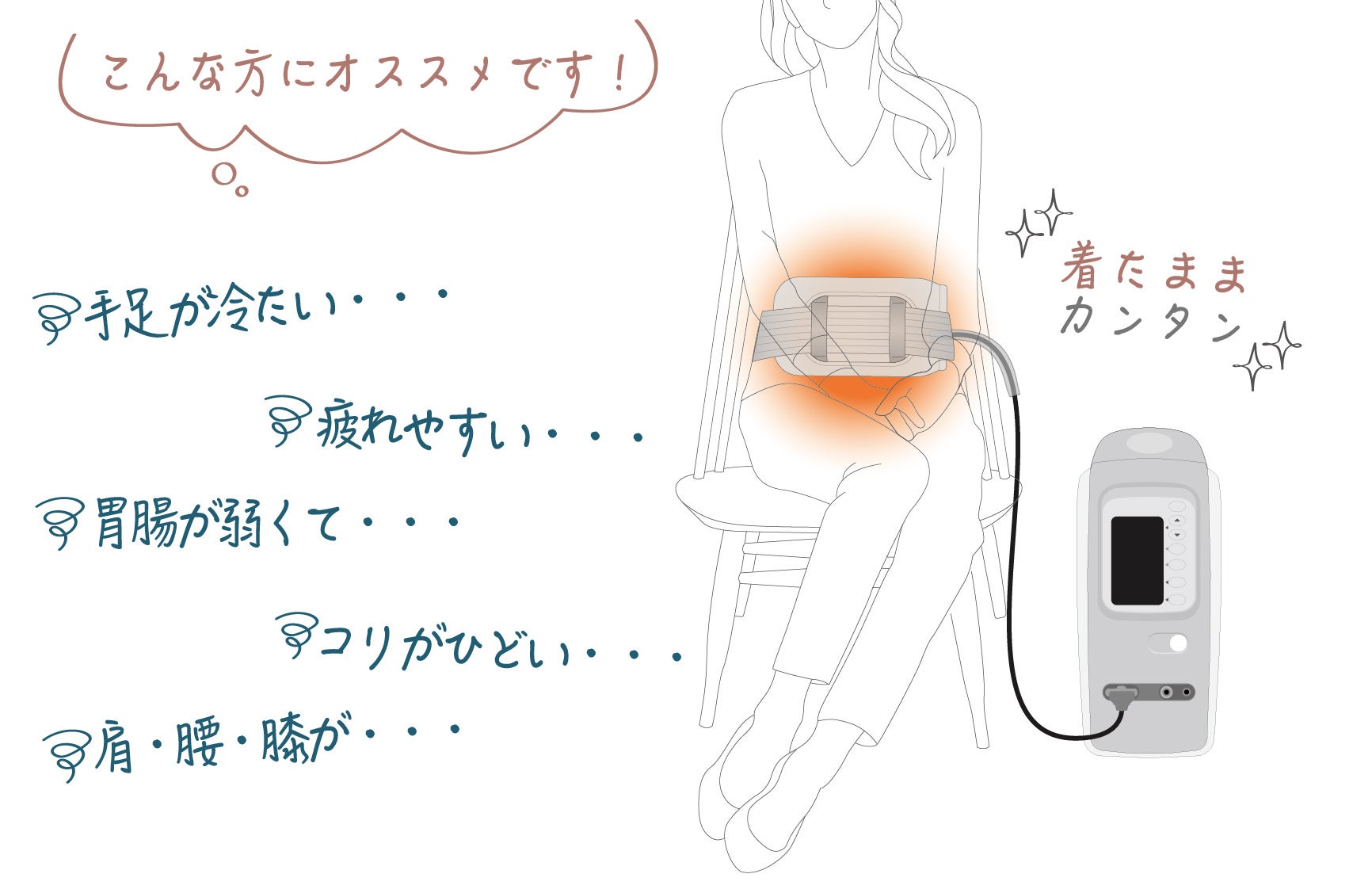 身体の深部まで温める「超短波」と、マイナス電子が作用する「負電荷」の2つの機能を搭載。