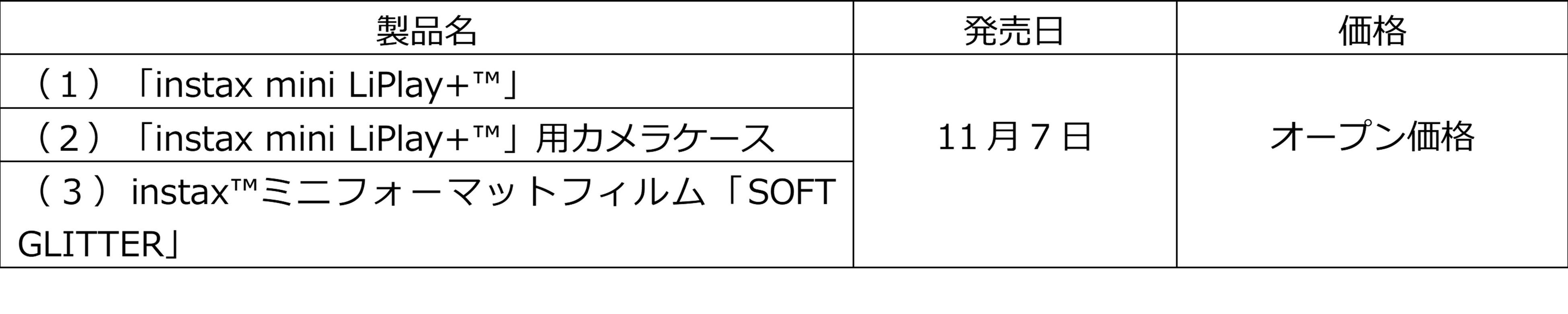 富士フイルム株式会社(本社:東京都港区、代表取締役社長・CEO:後藤 禎一)は、instax™”チェキ”シリーズのハイブリッドインスタントカメラ「instax(インスタックス) mini(ミニ) LiPlay(リプレイ)+(プラス)™」(以下、「mini LiPlay+」)を2025年11月7日に発売します。また、本体カラーに合わせたカメラケースと、ゴールドのアクセントで彩った一枚ずつ異なる柔らかい色合いのミニフォーマットフィルム「SOFT(ソフト) GLITTER(グリッター)」を同時発売します。