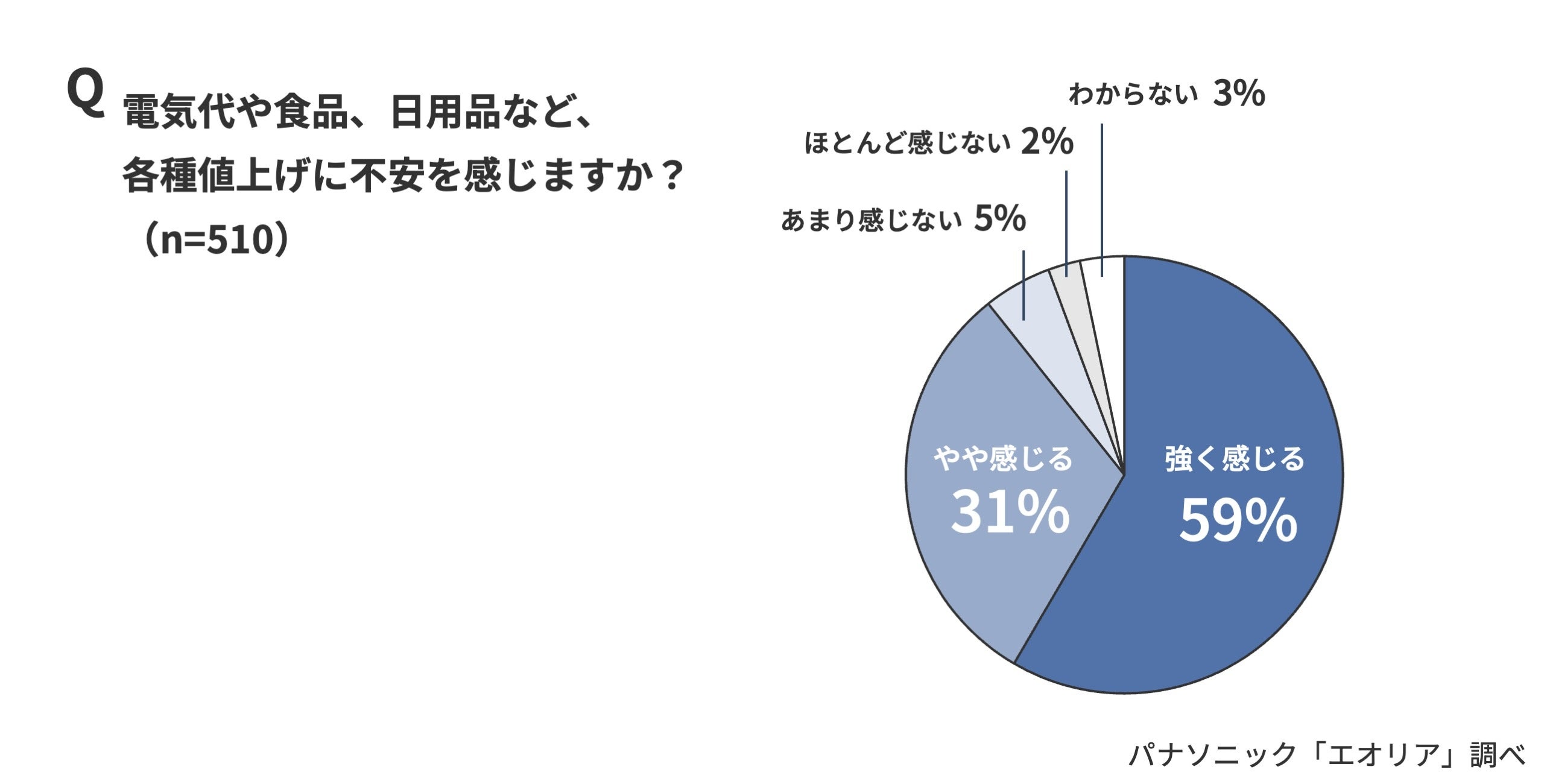 さらに、「電気代や食品、日用品などの値上げに不安を感じますか?」という質問では、「強く感じる」59%、「やや感じる」31%で合計90%と圧倒的多数となり、今冬も節約意識が高まることが予想されます。