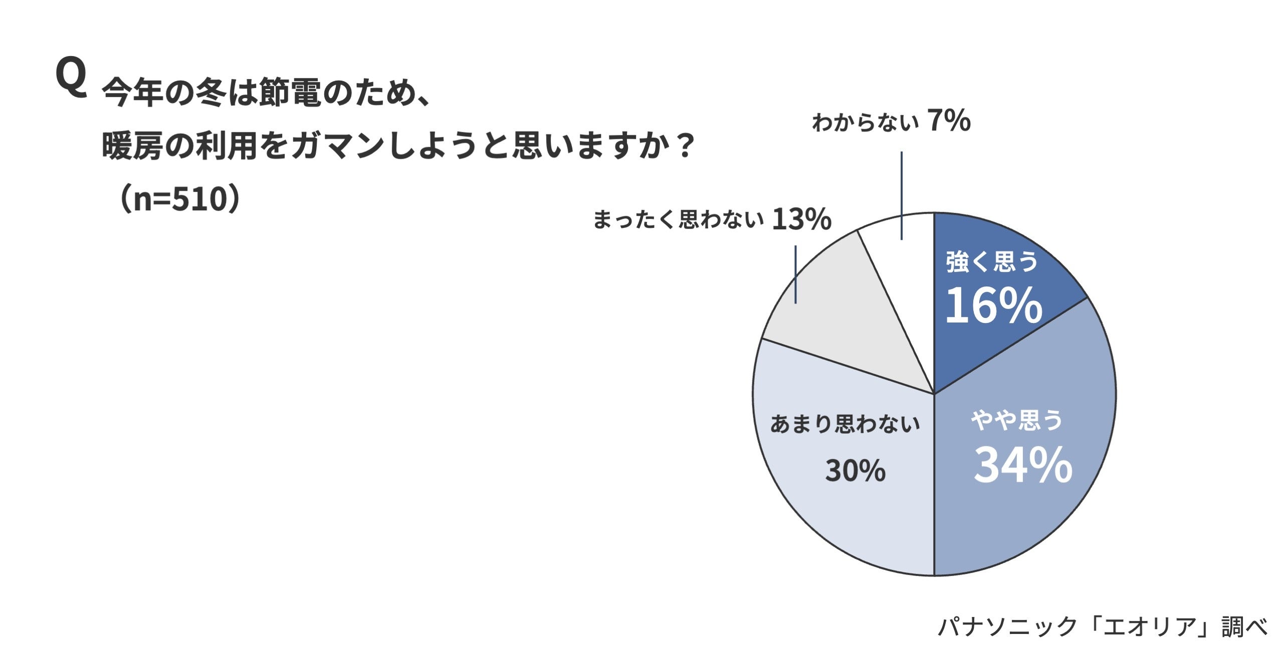 さらに、今年の冬の暖房ガマン意向についても、「強く思う」16%、「やや思う」34%で、50%が今冬も“暖房ガマン派”であることが明らかになりました。