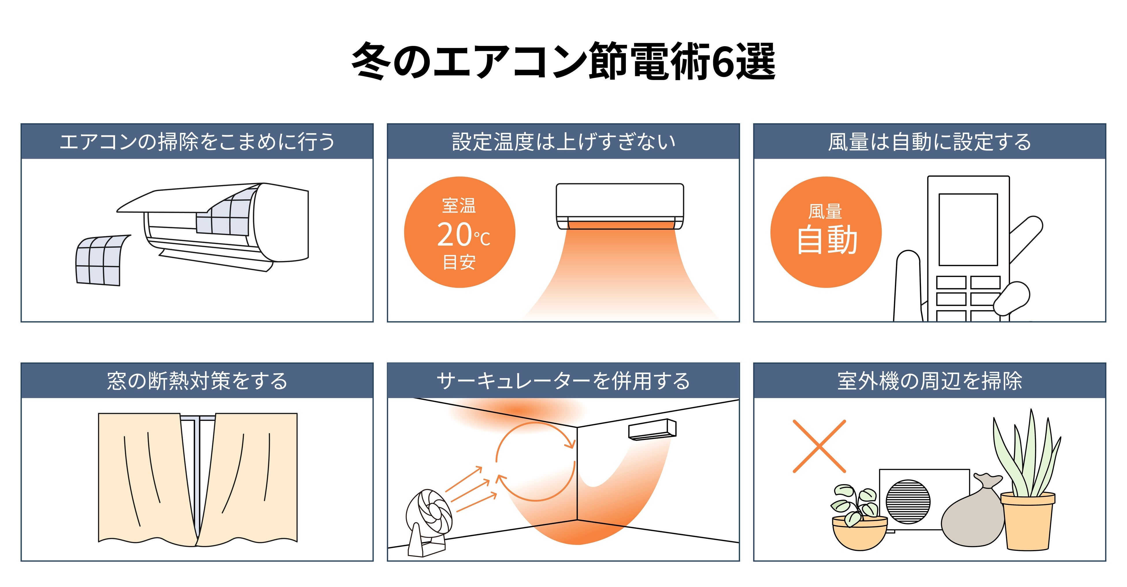 暖房シーズンに実践したい、「冬のエアコン節電術6選」をご紹介します。