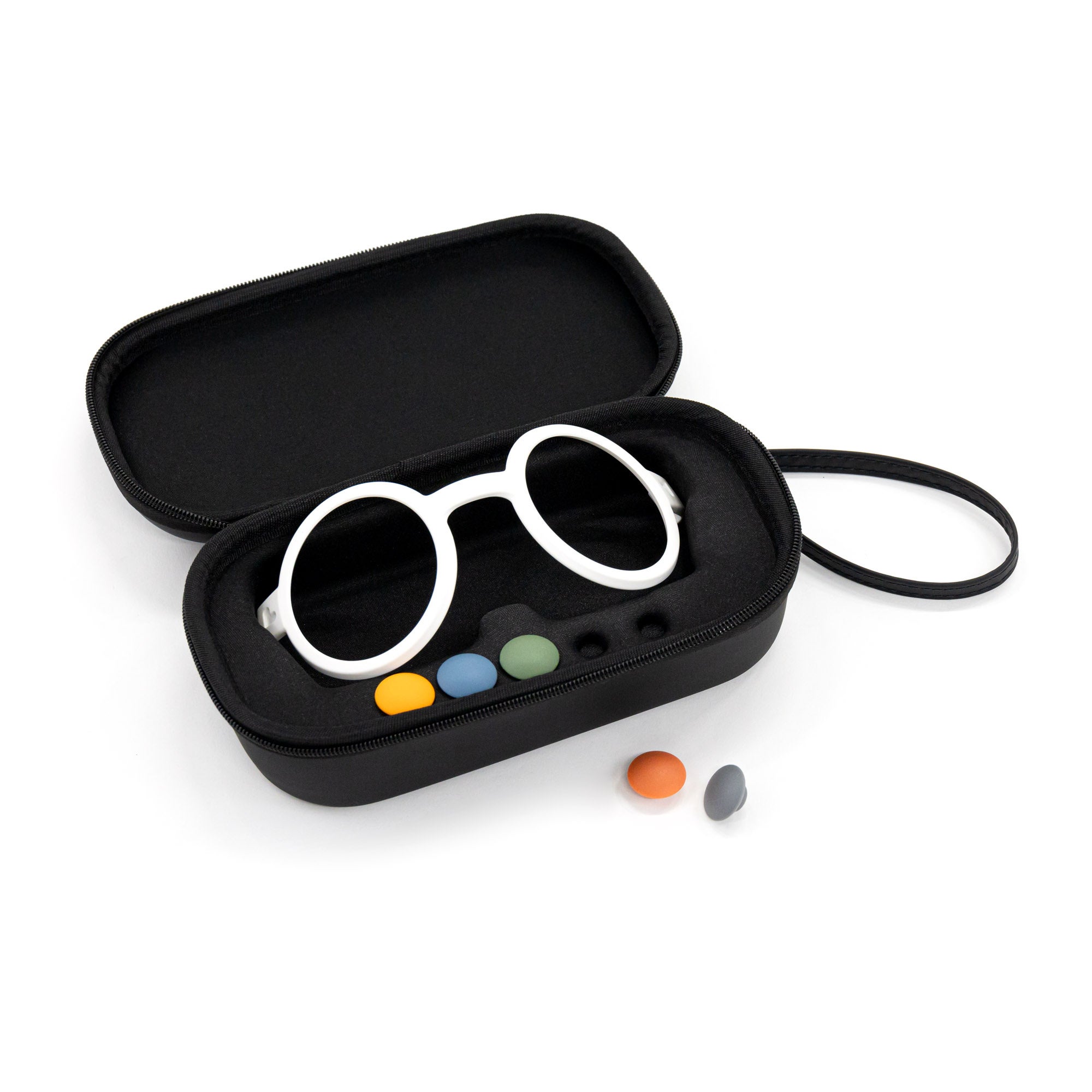 お出かけ先でも『LOVOT』のおしゃれを楽しみたい、そんな願いを叶える専用ケース。『LOVOT』のめがね1つと、らぼはな5つをまとめて持ち運べる便利なアイテムです。シンプルでおしゃれなケースが、大切なアクセサリーを衝撃や汚れから守ります。