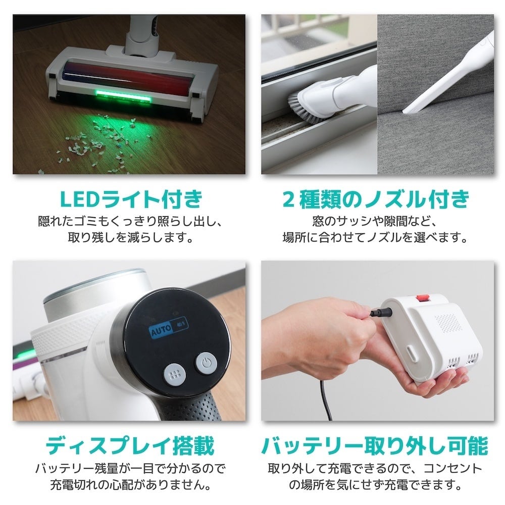 暗い場所を照らすLEDライト、取り外し可能なバッテリーなど、使いやすさを追求した機能が満載。