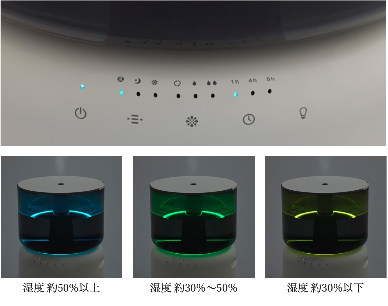 また、湿度に応じてタンク下部LEDの色が切り替わります。