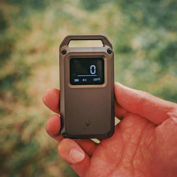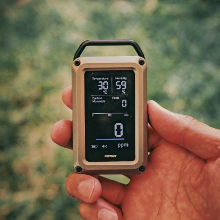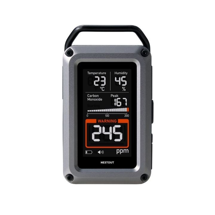 アウトドアに特化したブランド NESTOUT(ネストアウト)の、温湿度計を搭載した一酸化炭素アラームの3in1モデルです。