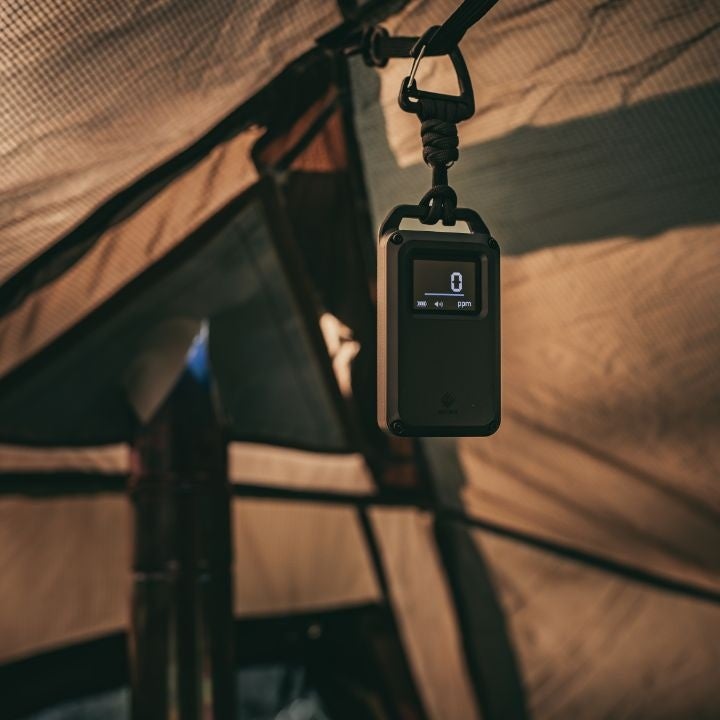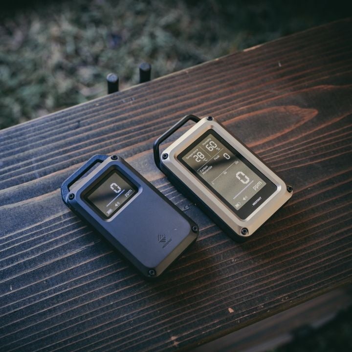 炭火やストーブ、発電機などから発生する一酸化炭素(CO)を検知し、アラームでお知らせすることで、テントやタープ、車内での一酸化炭素中毒を未然に防ぎます。検知には、ガスセンサーで世界トップクラスのシェアを誇るフィガロ技研株式会社の日本製・高性能センサーを搭載しており、環境の湿度変化に強く、CO以外の気体には誤反応しにくい高い安定性を実現しています。アウトドアでも使いやすい防水・防塵機能に加え、温度計と湿度計も搭載した3in1モデルと、ベーシックモデルの2製品をご用意しております。いずれも屋外での使用に配慮し、視認性の高いバックライト付き液晶を採用しています。