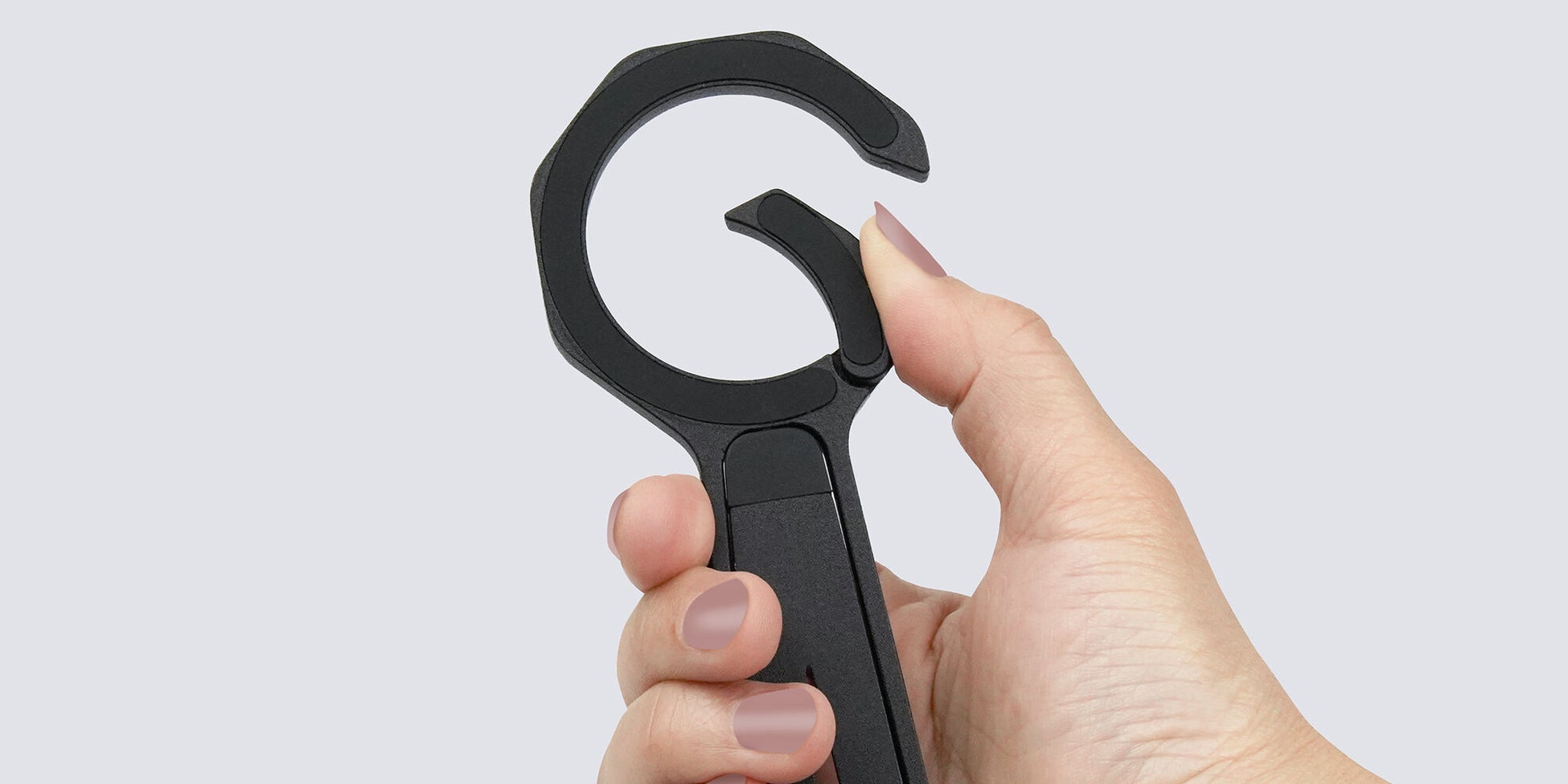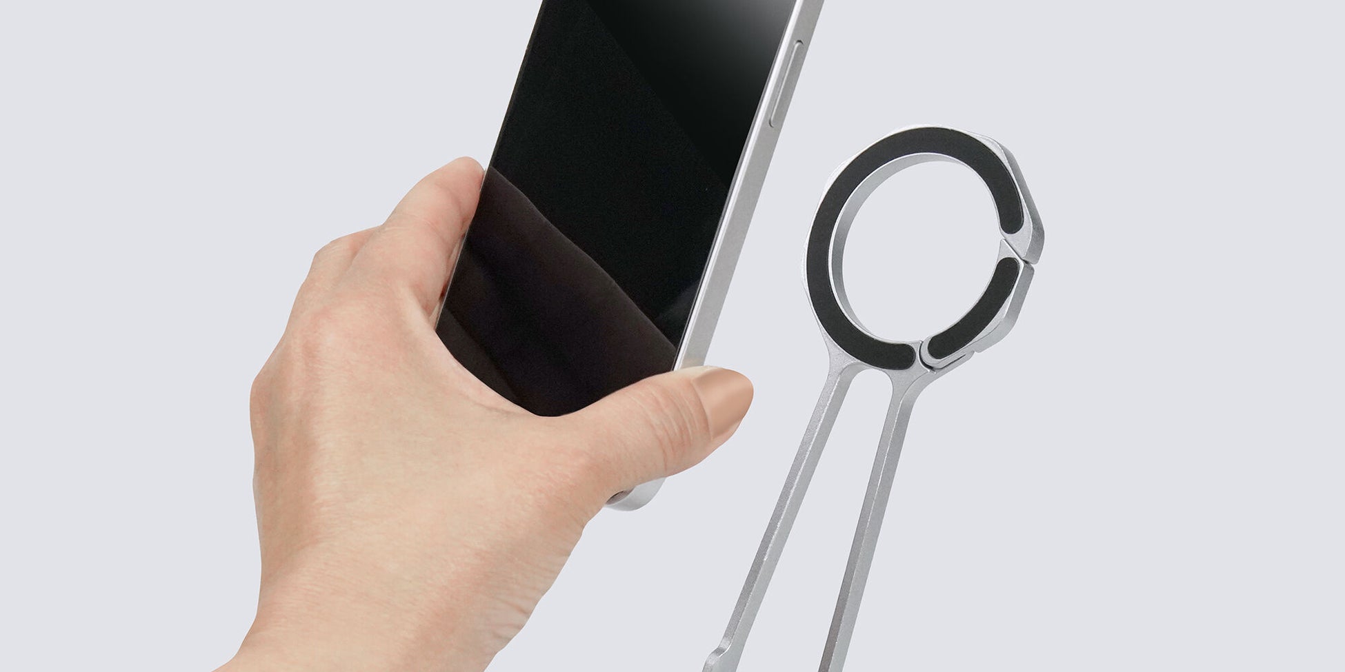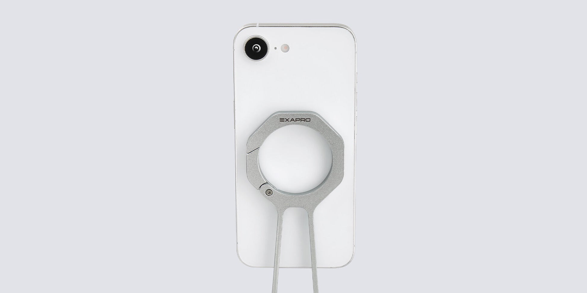 スマートフォンの利用シーンが多様化する現代において、撮影だけではなく様々なシーンでユーザーの利便性を向上させるアイテムです。マグネット部はカラビナ式で、携帯性にも優れたデザインです。
