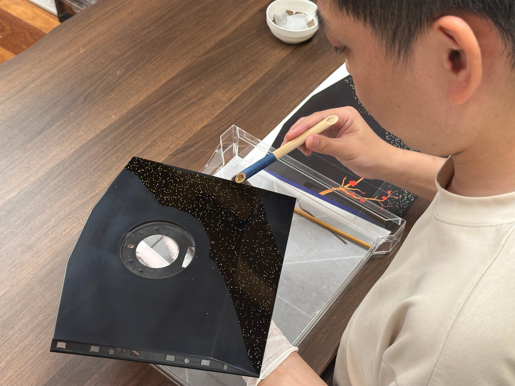 漆塗りは塗っては乾かし、磨き、また塗り重ねる—その繰り返しを何十回も積み重ねることで完成します。半年以上の時間をかけて仕上げられた艶やかな漆面には、職人の根気と誠実な想いが宿っています。