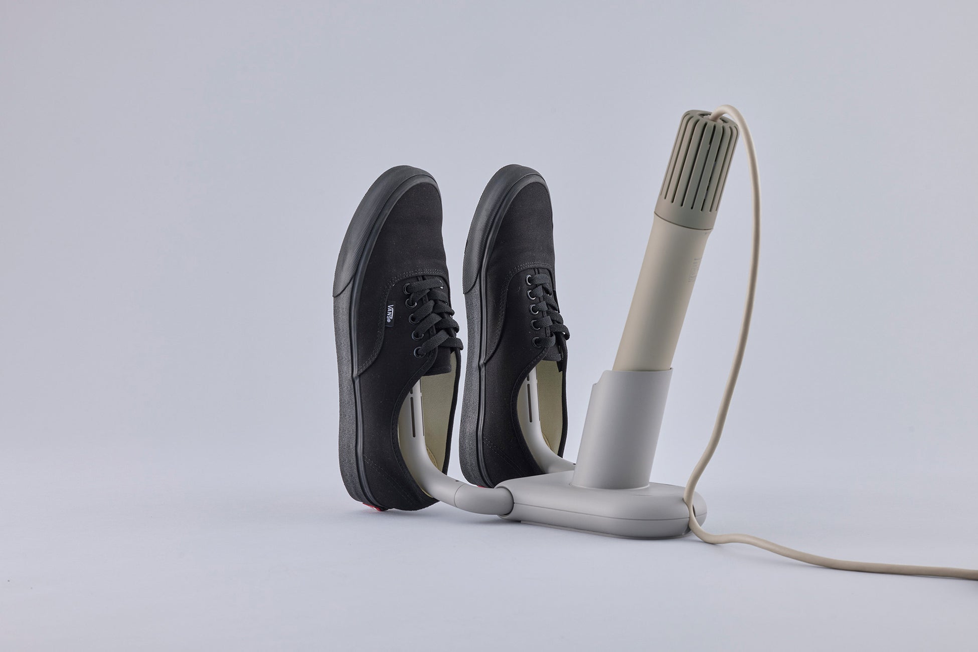 FOEHNを差し込んで使用することで、スニーカー・革靴・ブーツもつま先までしっかり乾く、靴乾燥スタンド。シューズボックスにすっきり収納可能な折り畳み式です。