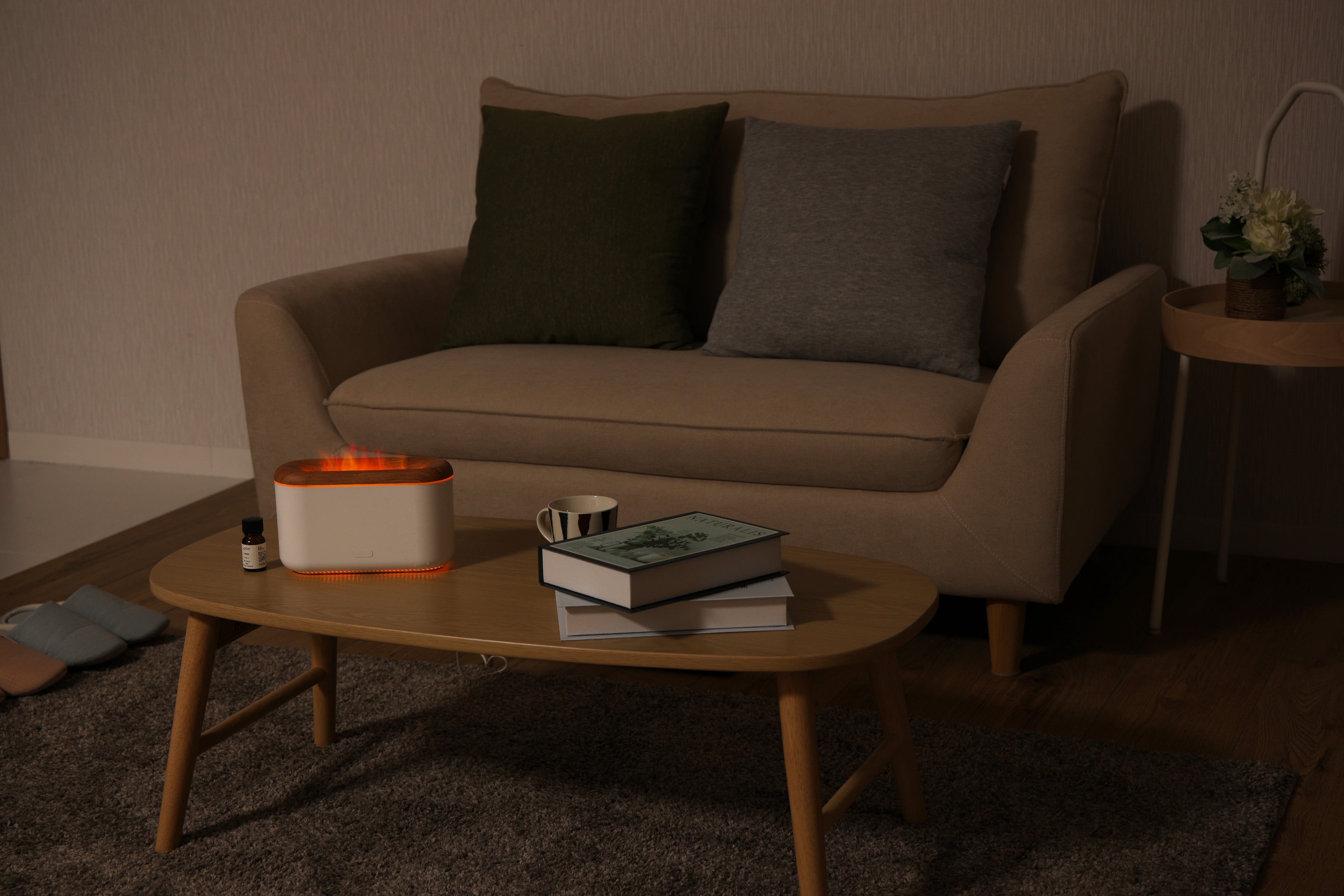 気温がぐっと下がり、乾燥が気になるこれからの季節も、アロマミストの加湿と癒される炎の演出で対策が期待できます。