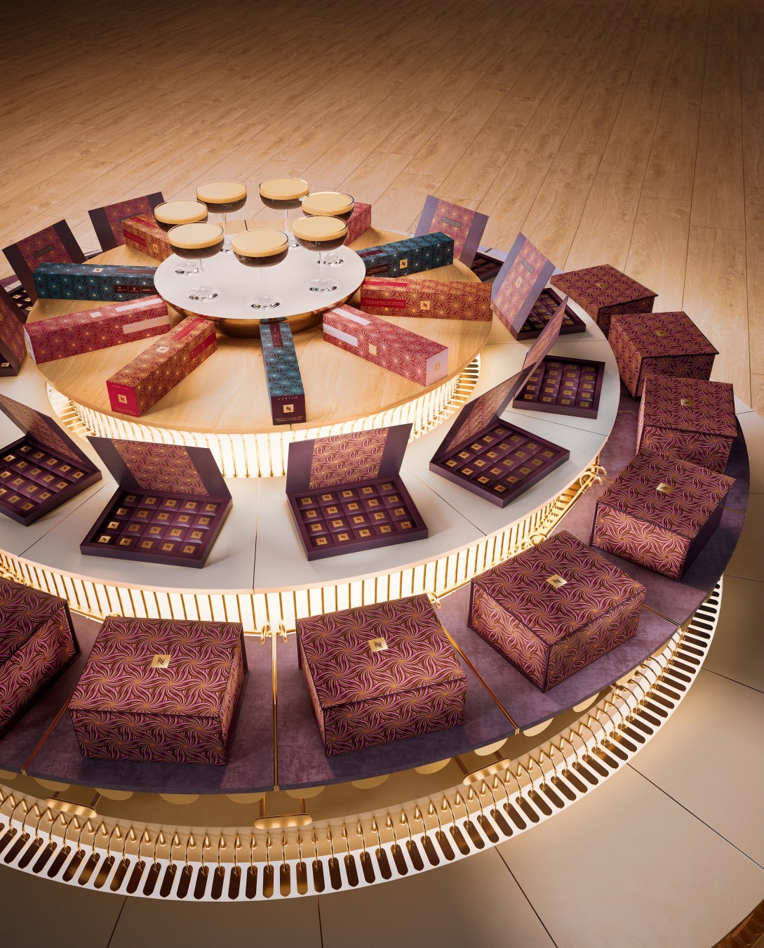 限定のコーヒーマグにはタンデュー・ムリウのコーヒーフラワー柄のエンボスを施し、魅力的なアイテムに仕上げました。また、大切な人への贈り物にも自分へのご褒美にもぴったりのフェスティブデザインに包まれた、キャラメリゼしたカカオニブ入りのチョコレートも限定発売します。