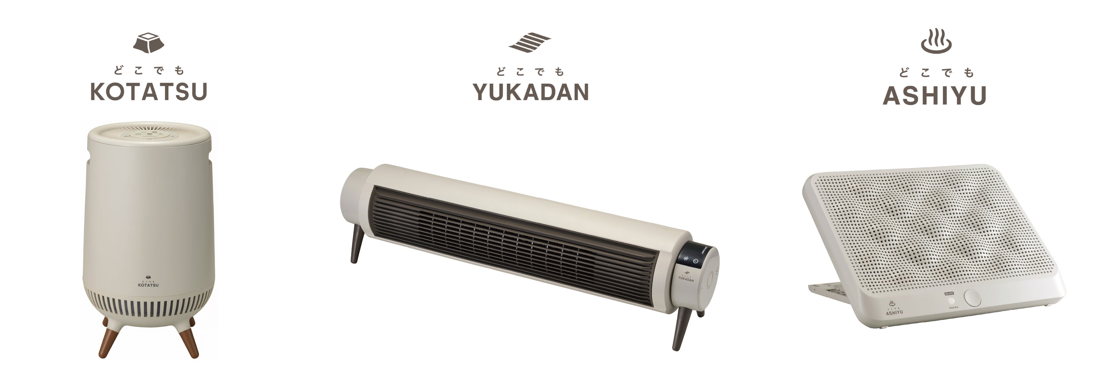 今シーズンは、昨年の発売から累計約9,200台を販売した「どこでもこたつ」をはじめとし、床暖房のように温かいフローリングを実現する「どこでも床暖」、まるで足湯に浸かっているような極楽気分になれる「どこでも足湯」など、寒さが厳しい冬に大活躍な3製品を用意しました。