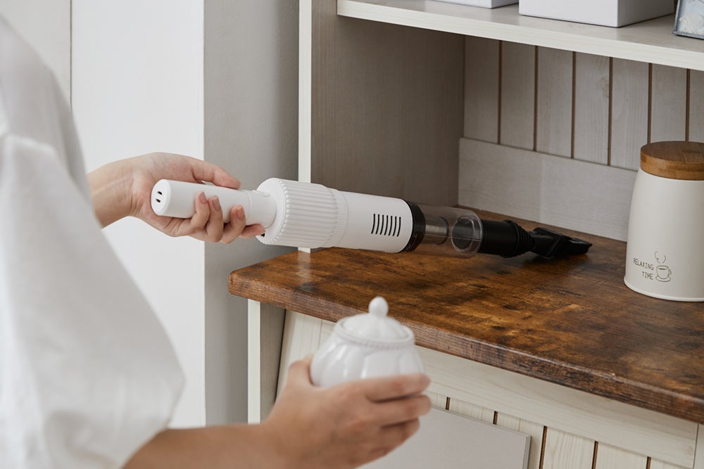 本体部分の重量は、リンゴ約1.5個分に相当するわずか520g。片手で軽々と持ち上げられ、階段や高い場所の掃除も腕への負担が少なく、快適に行えます。