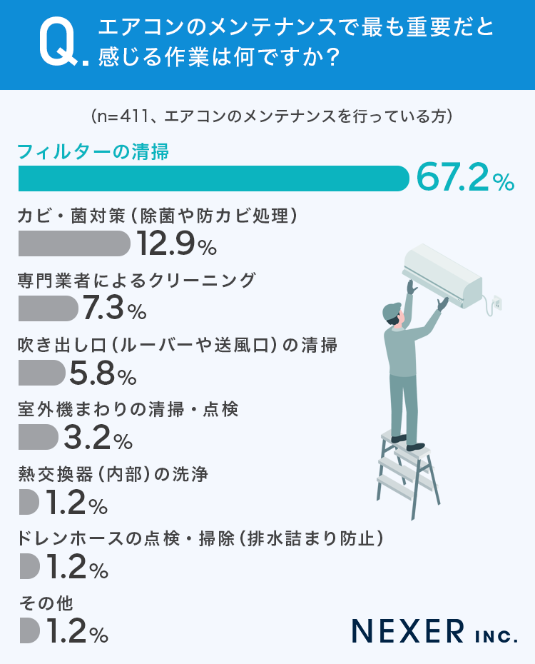 ■67.2%が、エアコンのメンテナンスでもっとも重要なのは「フィルターの清掃」