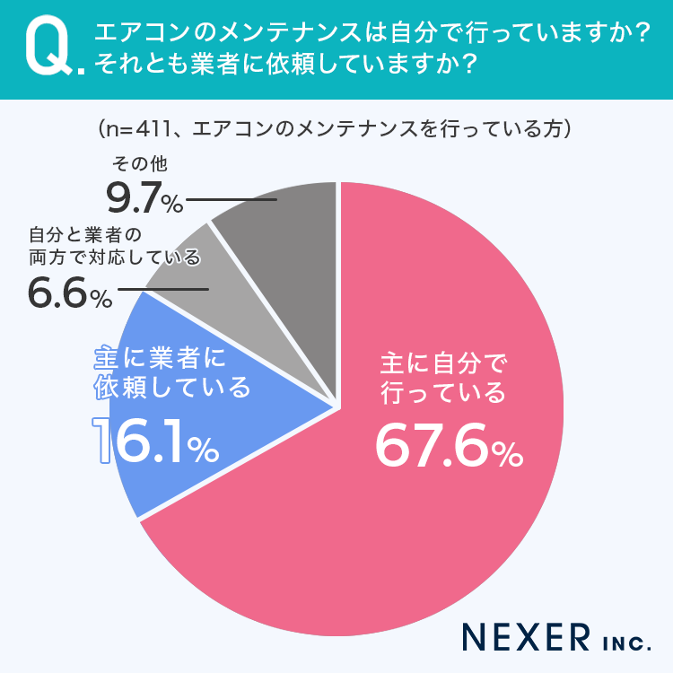 エアコンのメンテナンスを行っている方に対し、自分で行っているか業者に依頼しているかを聞いてみました。