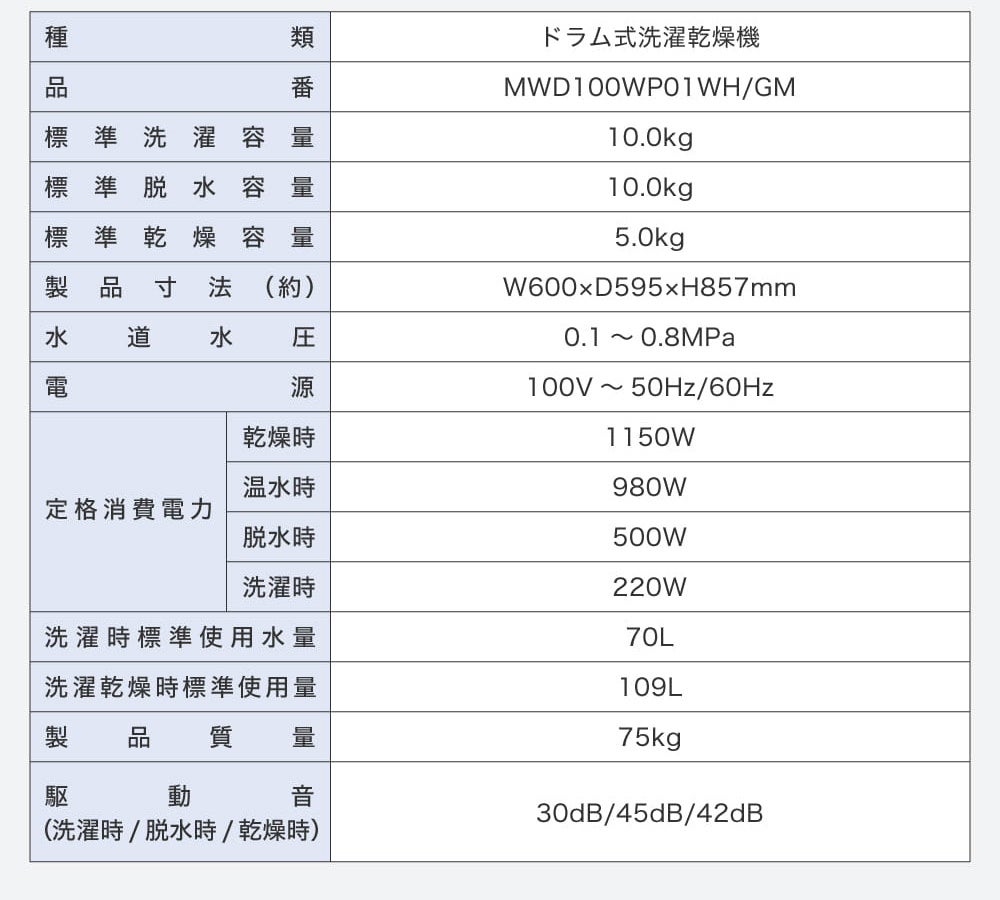※写真はMWD100WP01(10kg)のものです。