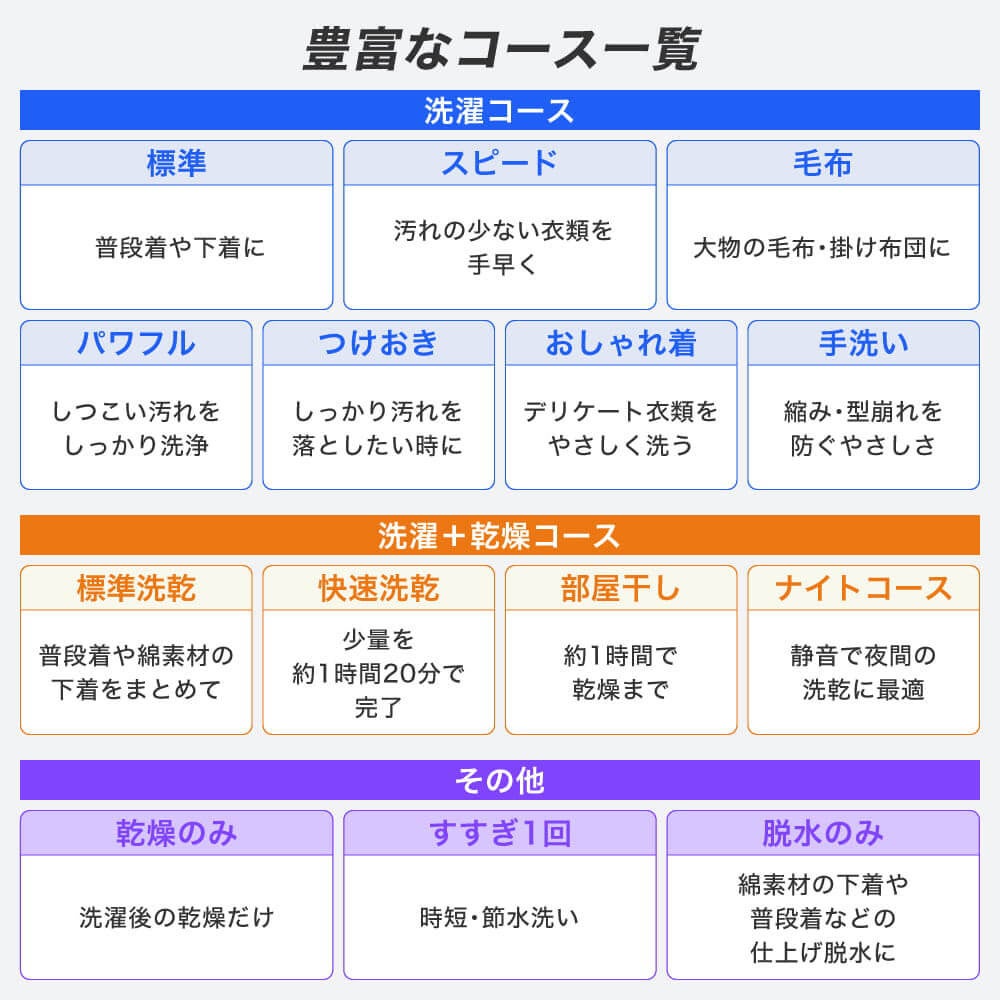 ※上記14コースに槽洗浄コースを加えて合計15コースとなります。