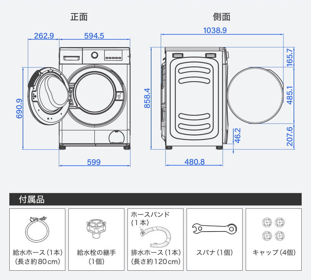 スペースをとらない横幅・奥行60cm ※MWD100WP01(10kg)のみ