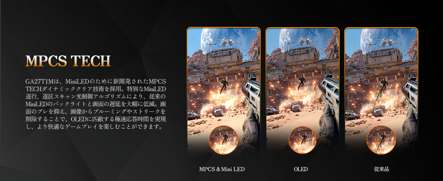 さらに、MPCS(Moving Picture Clear and Smooth)技術により、最速0.5msの応答速度を実現。