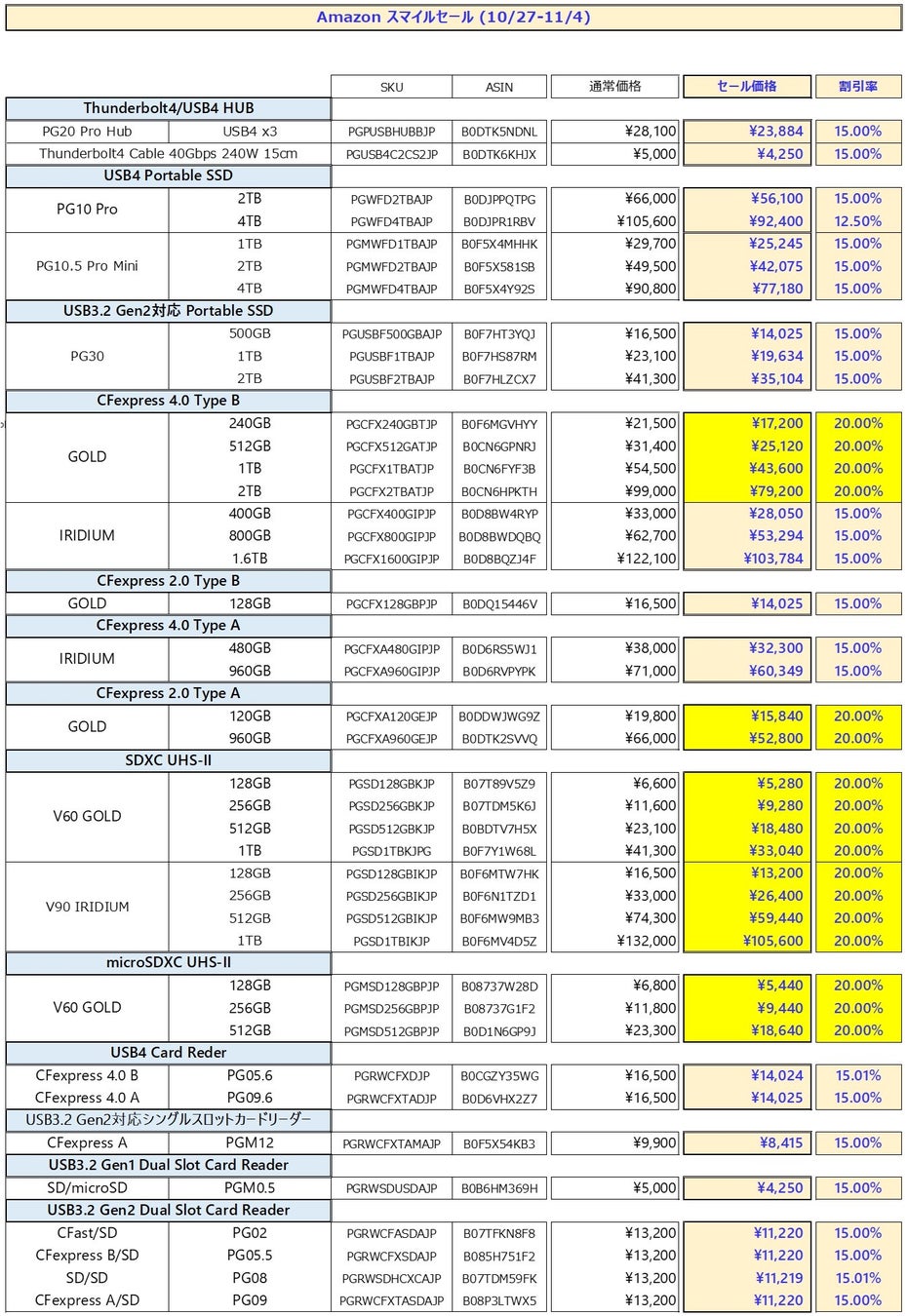 ProGrade Digital Inc.は、Amazon.co.jpで10月27日(月)午前9時から11月4日(火)に開催されるスマイルSALEに参加します。セール価格、新通常価格の詳細は価格表を参照ください。セール時の実際の価格はAmazonの掲載価格が優先します。またセール価格は在庫がなくなり次第終了となります。