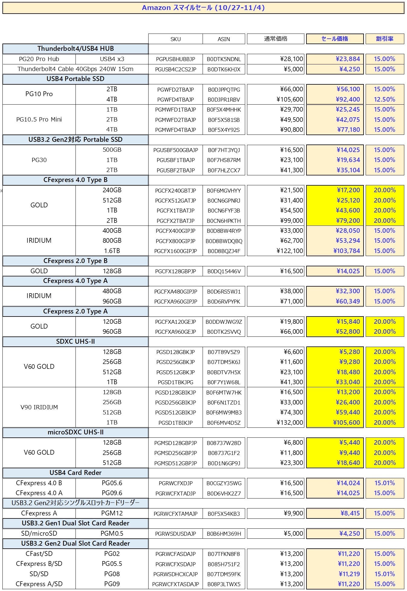 ProGrade Digital Inc.は、Amazon.co.jpで10月27日(月)午前9時から11月4日(火)に開催されるスマイルSALEに参加します。セール価格、新通常価格の詳細は価格表を参照ください。セール時の実際の価格はAmazonの掲載価格が優先します。またセール価格は在庫がなくなり次第終了となります。