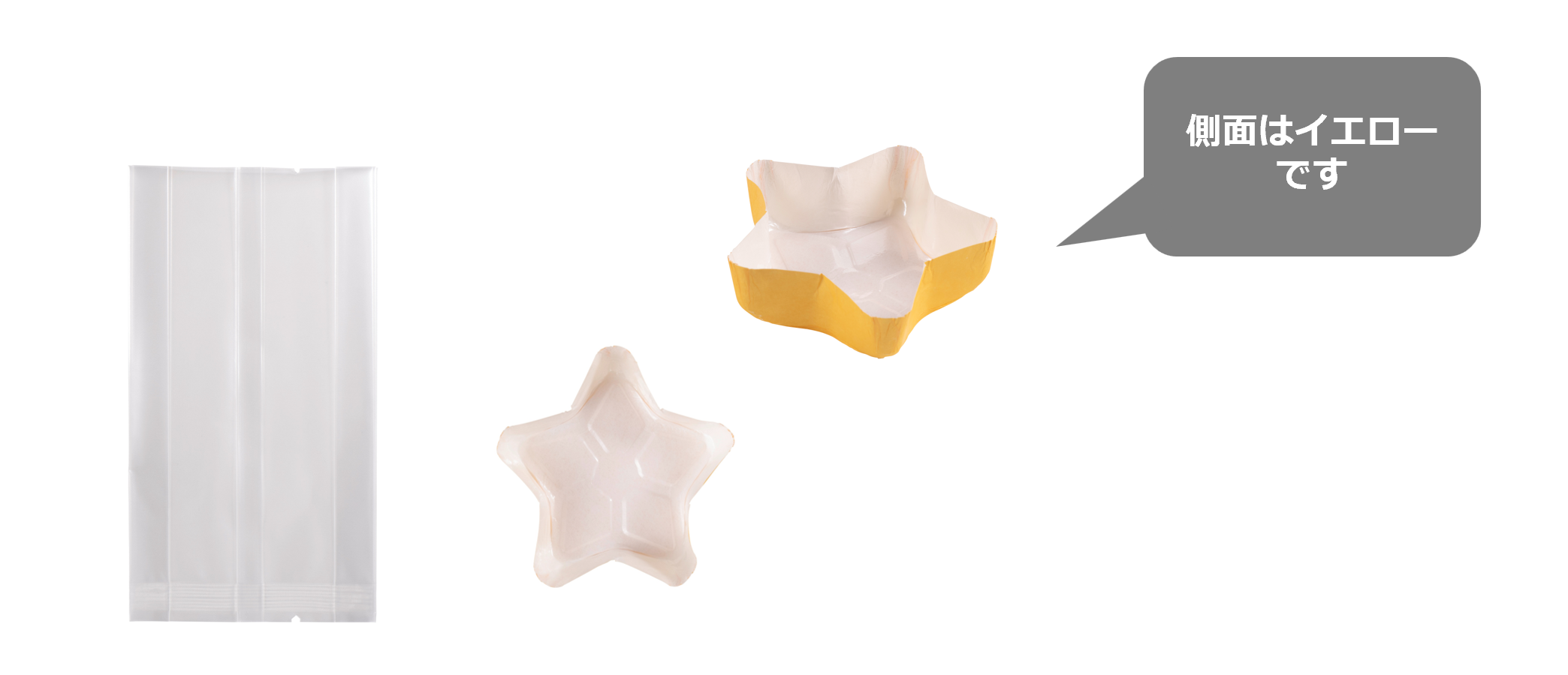 かわいいスター型のケーキカップと、ぴったりサイズのラッピングバッグのセット。