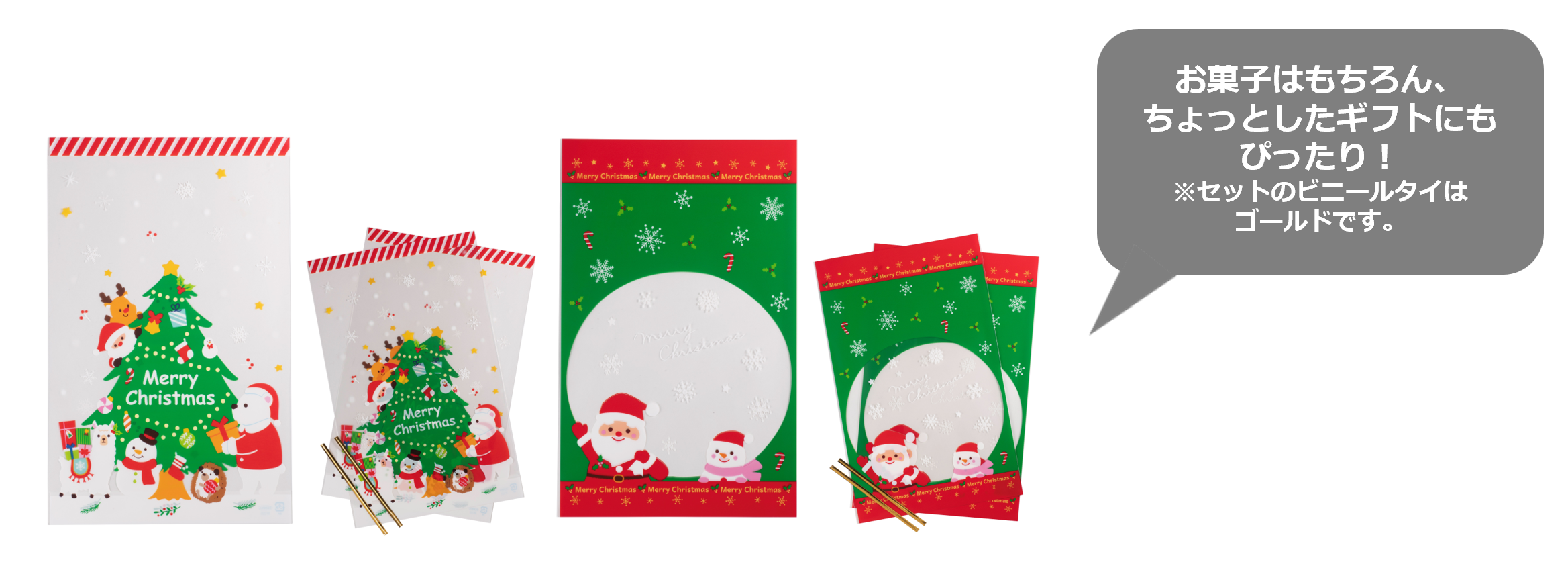 サンタさんのプレゼントとツリーの2種のデザインが2枚ずつセット。