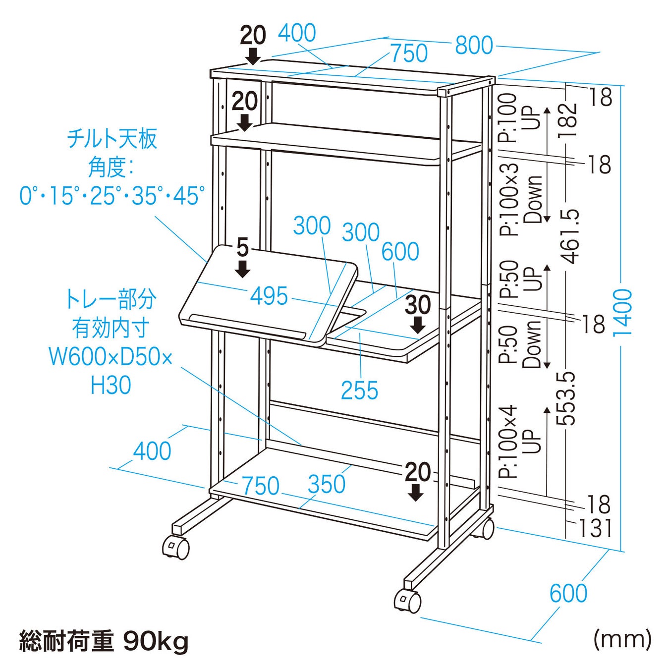 品名:チルト天板パソコンラック