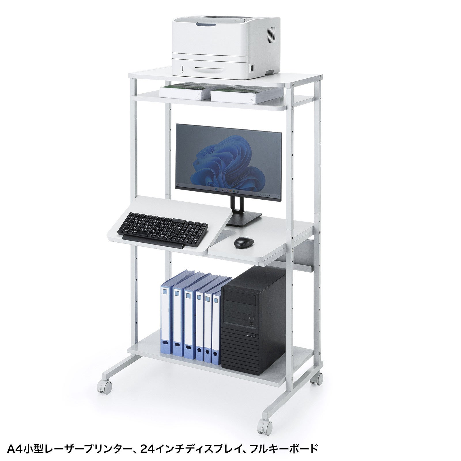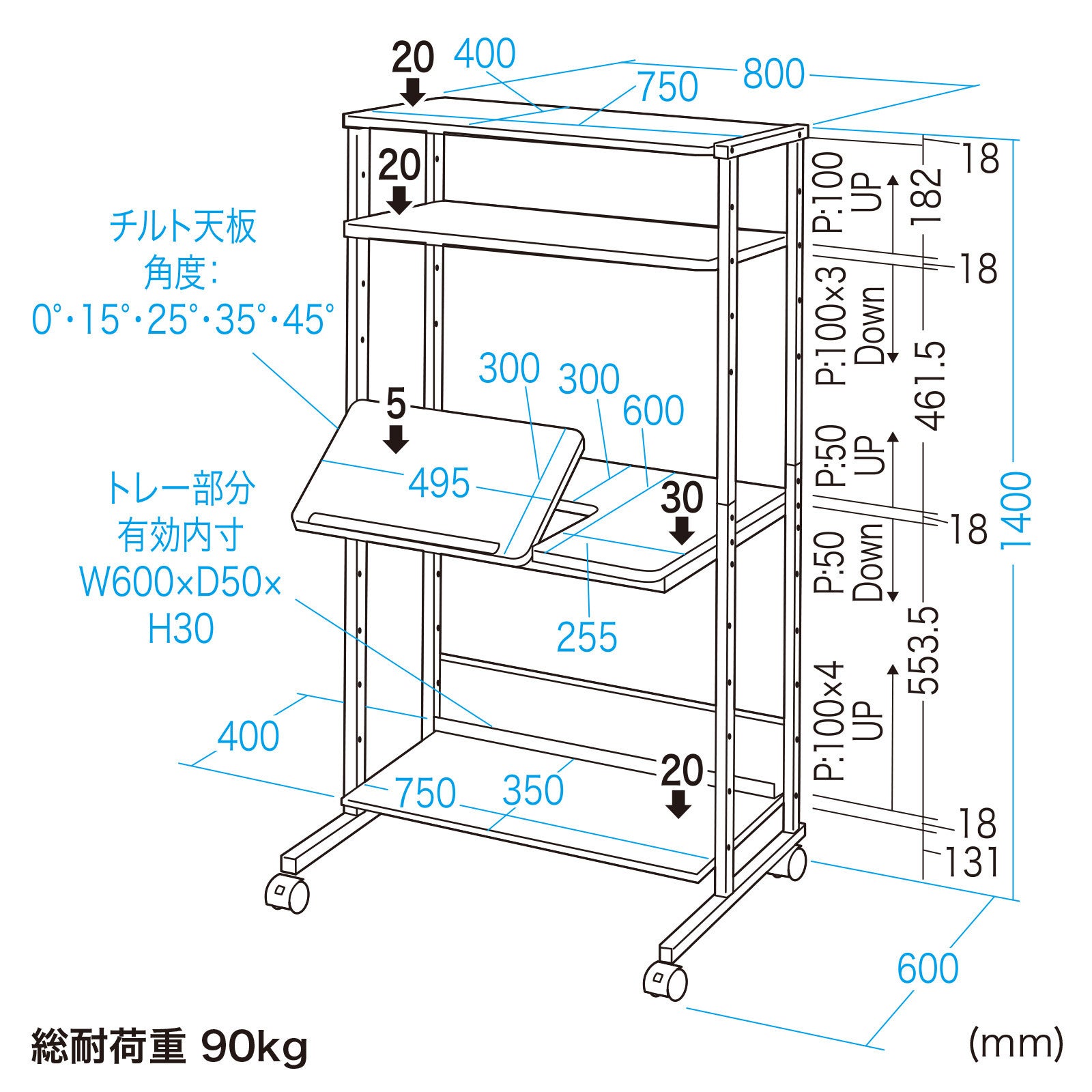 天板の傾斜を5段階で変えることができるパソコンラックです。