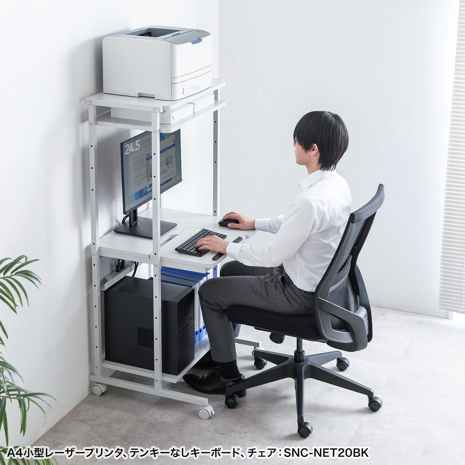 また、プリンターやデスクトップパソコンなどの機器もまとめて収納可能です。